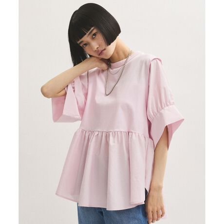 Tシャツのような楽な着心地ながら、フェミニンブラウスのような着映え感のでる、良いところ取りをしたクルーネックのプルオーバー。