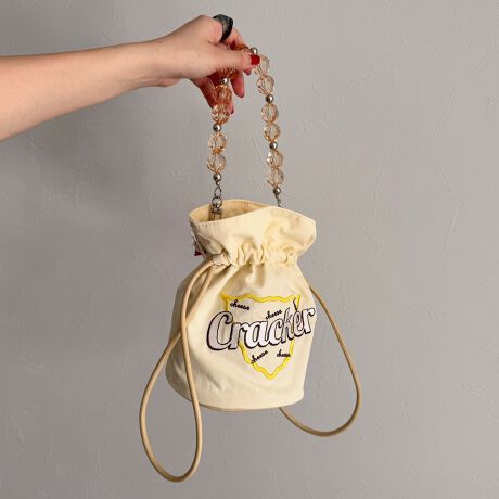 【CASSELINI/キャセリーニ】ビーズハンドル刺しゅう巾着バッグ