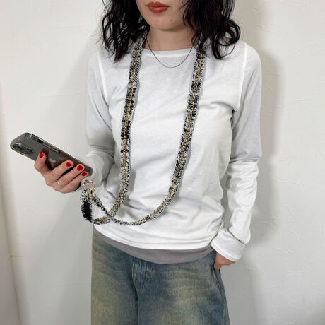 【by daisy/バイデイジー】ツィードチェーンストラップ ロング