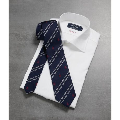 シーズンテーマでもある「地中海の旅」を感じさせるモチーフタイ。スーツやジャケット・ブレザーに合わせやすく、コーディネートのVゾーンに映える1本です。