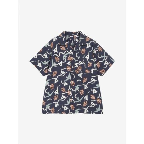 タウンユースはもちろん、水辺のスタイルや水遊びにも使えるシャツ。水や汗で濡れても乾きやすいナイロン100%で、HELLY HANSENが大切にしているフィールドへの環境負荷を減らすため、日本で回収された漁網を使う漁網リサイクルナイロンを素材の一部に採用しています。軽く柔らかな風合いで、心地よく着られるのが魅力。はっ水加工を施しているので、多少の雨や水なら対応可能。海やプールで着用しても劣化しにくい耐海水・耐塩素対応です。ややオーバーサイズのボックスシルエットで、ネックラインは開襟タイプ。フロントの貝調ボタンやポケットにあしらった水抜き穴で、マリンテイストをプラスしています。無地タイプのほか、灯台やサンゴなど海をモチーフにした総柄デザインも展開。簡易的に掛けておける襟吊付き。強い日差しのフィールドでの長時間活動に対応できるUVプロテクト(UPF50+、紫外線カット率95%以上)機能付きです。