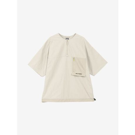 普段づかいしやすいデザインながら、SUPなどのウォーターアクティビティに重宝する機能をもたせたプルオーバートップ。はっ水性を備えているため、多少の雨や水なら対応可能。UVケア(UPF15-30、紫外線カット率85%以上)機能付きです。ウォーターアクティビティに使いやすいディテールも採用しており、胸のポケットの下部は、水抜けがよいメッシュ構造に。フロントのファスナーエンドは、サングラスループ付き。ファスナーの引手や裾のドローコードには、セーリングウエアをイメージしたフラッシュイエローを効かせています。ナチュラルな風合いの生地を使い、ゆったりとしたシルエットに仕上げているため、街でのスタイルにもフィット。フロントは着脱しやすいハーフジップ仕様。裾に配したドローコードでシルエットの変化が楽しめます。同素材のショーツとのセットアップもおすすめです。