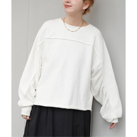 一枚で存在感があるデザインにしており、春先に向けてベロアの部分はメッシュの軽い素材を使用しています。ウラケ素材の肌当たりもよく、袖をまくったときのボリューム感がかわいいので、一枚で着る時期におすすめなアイテムになります。