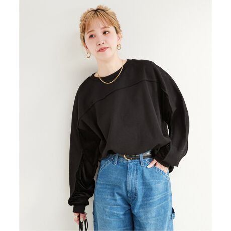 一枚で存在感があるデザインにしており、春先に向けてベロアの部分はメッシュの軽い素材を使用しています。ウラケ素材の肌当たりもよく、袖をまくったときのボリューム感がかわいいので、一枚で着る時期におすすめなアイテムになります。
