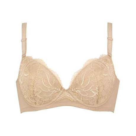 ●バストサイドすっきり カップサイドの伸びない素材でバストをシャープに●脇・背中すっきりスムージング 脇ボーンとバック中央のテープで、脇肉をしっかりサポート。幅広バックで背中に 段差がつきにくく、脇もくいこみにくい。アウターシルエットをきれいにととのえる●カップ肌側は快適な肌ざわり カップ肌側には綿混かのこ素材を使用●ワイヤーループは汗をかいてもベタつきにくい 汗だまりの起こりやすいワイヤーループにベタつきにくい吸汗速乾素材を使用※環境に配慮した再生糸混のレースを使用