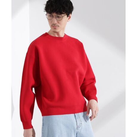 「大人のスウェット」スウェットライク接結クルーネックニット