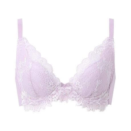 ●バストを美しいポジションで安定 ストラップと連動したカップ脇切り替え構造が、面で脇をやさしくおさえながら、バストを引きあげる 前中心の低いワイヤーで胸の谷間を美しく見せる●脇から背中のラインをすっきり バックはテープレスでしめつけ感が少なく、脇や背中に段差がつきにくい カップ脇上辺とアンダーは伸びのよいストレッチテープを使用・花が連なった印象的なリバーレースがやさしくエレガントな雰囲気・カップ下にリバーレースのアップリケを飾って華やかな印象に