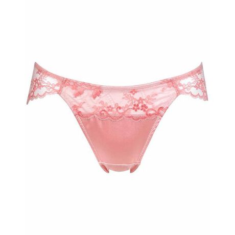 ・フロントは裏打ち付きで透けにくい繊細なリバーレースと光沢感のあるサテンを組み合わせた、インポートライクなシンプルデザインでグレード感たっぷりなショーツ。はきこみ丈はあさめでおなか部分がもたつきにくい仕様。バックが総レースデザインのため洋服にひびきにくいのもポイントです。ハイレッグタイプで、足さばきもすっきり。※お洗濯は、必ず「取扱い表示」にしたがってください。