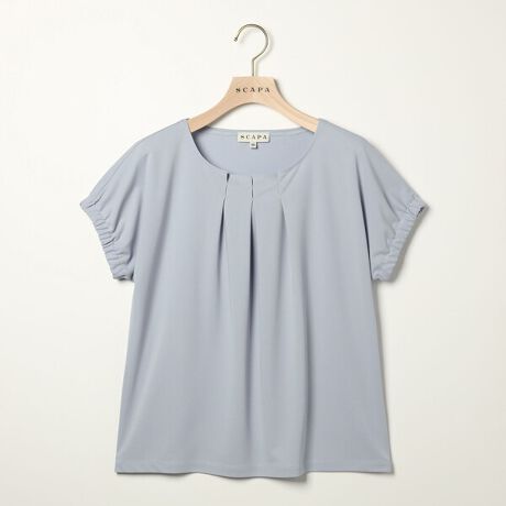 エレガントなムードの半袖カットソー。胸元に入った立体的なタックがエレガントなデザインアクセント。袖口はゴム仕様でくしゅっとしたシルエットがフェミニンなムード。シンプルなデザインとコーディネートしやすい落ち着いたカラーで、あらゆるボトムとマッチ。おしゃれなお出かけコーディネートが完成するアイテムです。