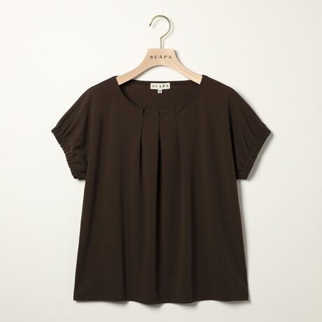 エレガントなムードの半袖カットソー。胸元に入った立体的なタックがエレガントなデザインアクセント。袖口はゴム仕様でくしゅっとしたシルエットがフェミニンなムード。シンプルなデザインとコーディネートしやすい落ち着いたカラーで、あらゆるボトムとマッチ。おしゃれなお出かけコーディネートが完成するアイテムです。