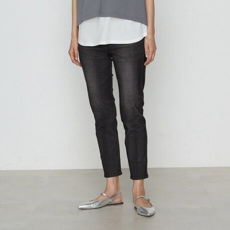 裾に向かって適度に細くなるスリムなシルエットに加え脇に向けて色が濃くなることで、視覚効果で脚の細見せが期待できます。