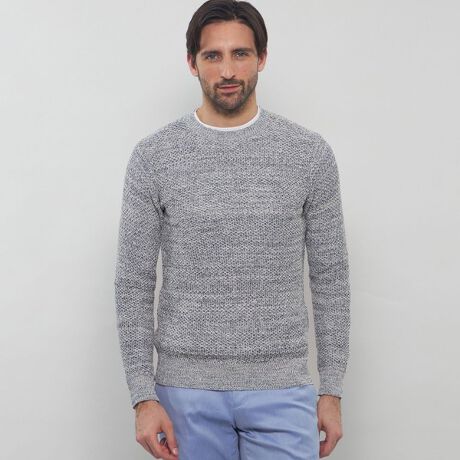 レギュラーフィットのシンプルなクルーネックのプルオーバーです。ざっくりとした編地感の為、引っかけと自重による寸法変化にご注意の上、ご着用ください。