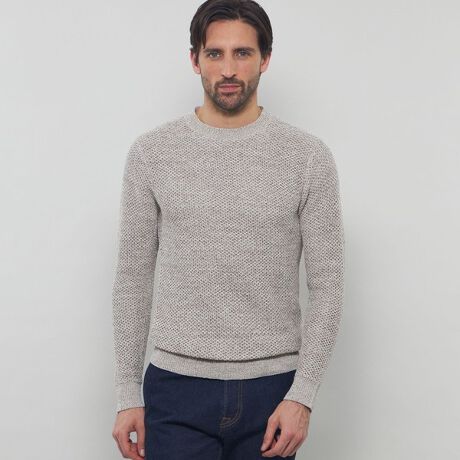 レギュラーフィットのシンプルなクルーネックのプルオーバーです。ざっくりとした編地感の為、引っかけと自重による寸法変化にご注意の上、ご着用ください。