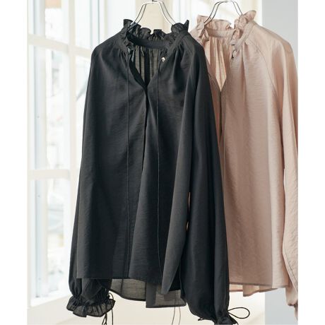 ゆったりしたサイズ感により、ギャザーの動きがより映えるブラウスです。