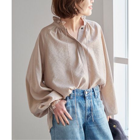ゆったりしたサイズ感により、ギャザーの動きがより映えるブラウスです。
