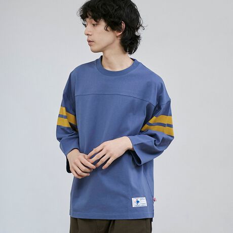 スポーツテイストを取り入れつつも、普段使いもしやすいフットボールTシャツ。