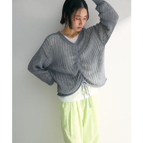 シャーリングニットとインナーがセットになった嬉しいアイテム。メッシュ編みニットはトレンドのギャザーディテールを効かせ、前後どちらでも着用できる汎用性の高さがポイントです。透け感を活かして色や柄物インナーとのコントラストを楽しむのもおすすめ。それぞれ単品でも着まわしがきき、コーディネートの幅が広がるアイテムです。透け感[ややあり]