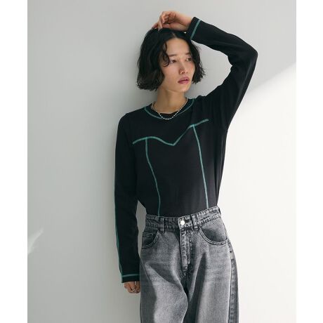 カラーによって異なる配色ステッチデザインが目を惹くロングTシャツ。ストレッチの効いた素材で程よく身体にフィットしてくれる着心地の良い1着です。カジュアルながらも細畝リブの表面感がきれいめスタイルにも相性抜群。印象の異なるカラーバリエーションで、色違いでも揃えたくなるおすすめのアイテムです。透け感[なし]