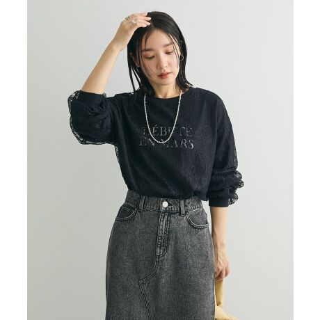 フラワーレースから覗くロゴプリントがお洒落なプルオーバー。ゆったりとしたオーバーシルエットでリラクシーながらも華やかさのある甘辛MIXデザインが魅力です。コットンベースの天竺素材で取り扱いしやすいのも嬉しいポイント。スタイリッシュなモノトーンでデニムからスカートまで幅広いボトムと合わせて着こなしが楽しめます。透け感[なし]
