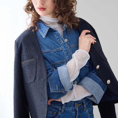 きれいめなボトムと合わせたONスタイルはもちろん、あえてデニムなどのカジュアルボトム合わせるのもおすすめです。デイリースタイリングにもなじみよく、程よくスタイリングのアクセントになるアイテムです。
