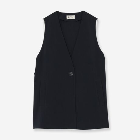 ・腰回りまでかかるミドル丈のジレは体型カバーに