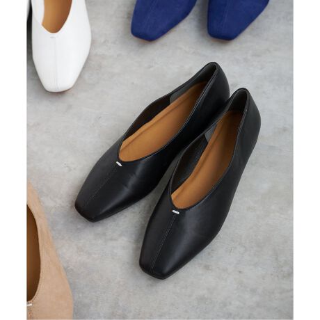 オールシーズンで活用しやすいスクエアトゥのバレエシューズ。