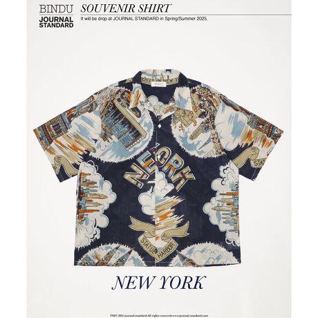 インラインで展開しているビンテージ風スーベニールマッププリントアロハシャツをもとに、サイジングやシルエットをオリジナルパターンで製作。前年別注同様ややゆったりした身巾と肩から袖にかけてのなだらかな形状、薄手のインド綿に製品洗いをかけ生地の張り感を取り、衿と前端の芯地をフラシ芯にすることで、しなやかな風合いにして着心地を良くしリラックス感のあるシルエットに仕上げています。