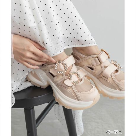 【22.5-25.5】ビジューダブルベルトオープンスニーカー