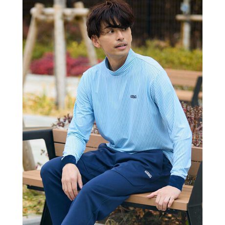 クラシカルなモックネックです。凹凸感のある、吸水速乾性に優れた素材を使用しています。「見た目トラッド、中身は高機能」とGB GOLFらしいアイテムの1つです。春から秋まで、長い期間着用していただけるよう肉感は薄く仕上げました。