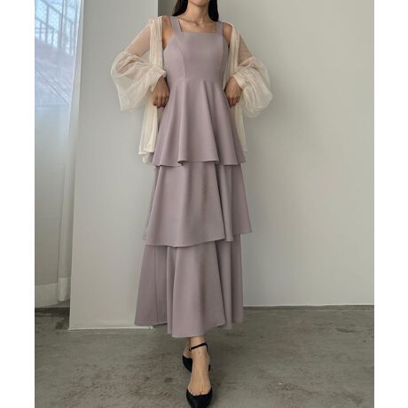 Louere【薄くて軽いジョーゼット生地】フリルティアードキャミワンピース【一部ペチスカートSET】