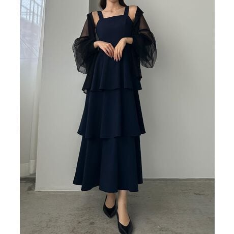 Louere【薄くて軽いジョーゼット生地】フリルティアードキャミワンピース【一部ペチスカートSET】