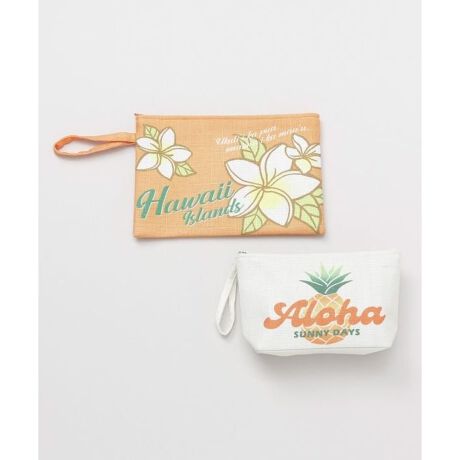 [型番:47AP5101-2025]人気のハワイのモチーフ柄のセットポーチ。大小2個セットでトラベルの際の荷物整理などにおすすめです。
