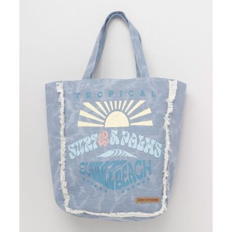[型番:47AP5102-2025]デニム風生地の大判トート。サーフカジュアルテイストで着替えやタオルもしっかり入るサイズ感。サイドのフリンジが夏を演出してくれる。サーフにも買い物のお供にもおすすめです。