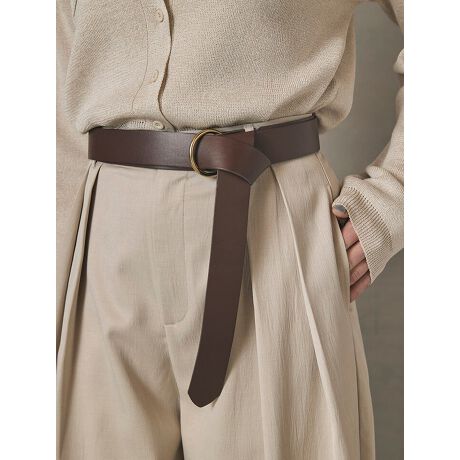シンプルなデザインに、ラウンド型のバックルがアクセントになったベルト。ホールがないので、自由にサイズ調節ができるのも嬉しいポイントです。様々なボトムスと合わせやすく、シャツやワンピースにウエストマークした着こなしもおすすめです。