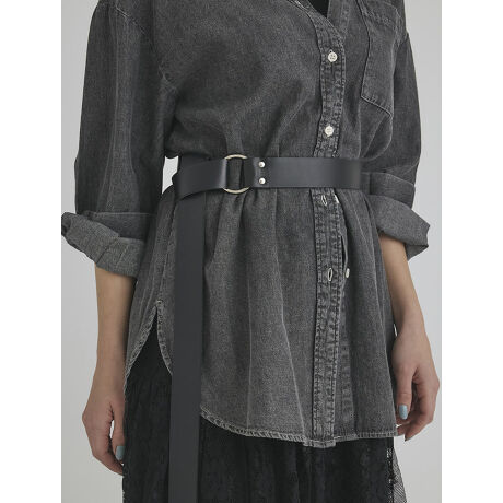 シンプルなデザインに、ラウンド型のバックルがアクセントになったベルト。ホールがないので、自由にサイズ調節ができるのも嬉しいポイントです。様々なボトムスと合わせやすく、シャツやワンピースにウエストマークした着こなしもおすすめです。