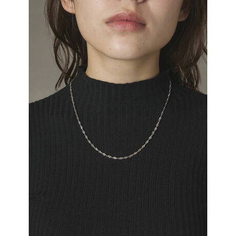 シンプルながら立体感のあるスクリューチェーンが目を惹くネックレス。メタリックの上品な輝きが美しく、首元に華やかさをプラスしてくれます。カジュアルなスタイルにはもちろん、ドレスアップしたパーティーシーンにも活躍するアイテムです。