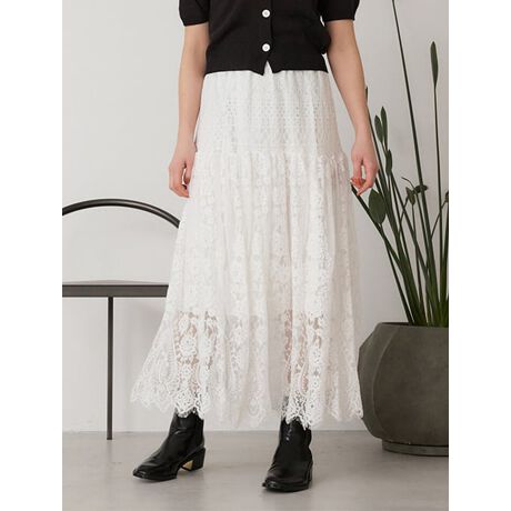 ティアードデザインがフェミニンなフラワーレーススカート