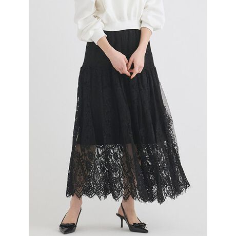 ティアードデザインがフェミニンなフラワーレーススカート