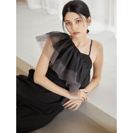 ふんわりとしたボリュームのあるチュールケープが付いた、キャミソール型のオールインワン。それぞれ単品でも使えて、さまざまな着こなしが楽しめます。小物合わせ次第で、デイリーからオケージョンまで幅広いシーンで活躍するアイテムです。