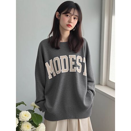 シンプルながらも存在感のある大きめのカレッジロゴがポイントのニット。ゆったりとしたシルエットが、抜け感のある着こなしを演出します。カジュアルなパンツにもフェミニンなスカートにも合わせやすく、様々なスタイリングが楽しめるアイテムです。