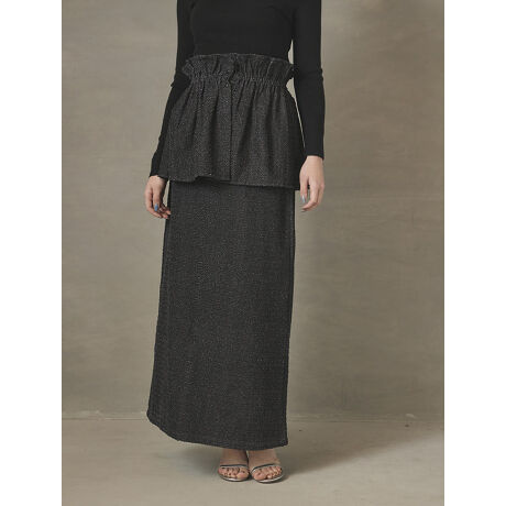 クラッシュ加工を施した、表情豊かなロング丈のデニムスカート。裾に向かってゆるやかに広がるシルエットが、女性らしさを演出します。フリル部分はスカートに重ねたり、ビスチェとして使用したり、マルチウェイに活躍してくれるアイテムです。