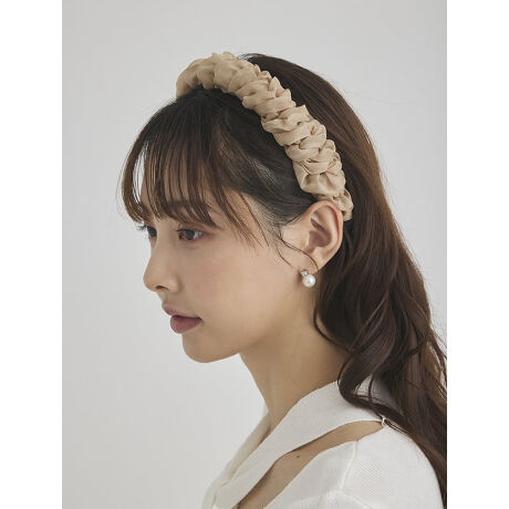 クシュクシュとしたチュールのギャザーデザインが目を惹くカチューシャ。程よいボリューム感で、ヘアスタイルに華やかさをプラスしてくれます。カジュアルにもドレスアップしたスタイリングにも合わせやすく、様々なシーンで活躍するアイテムです。