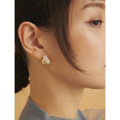 ゴールドのメタル×パールが女性らしい雰囲気のフープイヤリング。上品な輝きと程よいボリューム感で、顔周りを華やかに演出してくれます。カジュアルにもドレッシーなスタイリングにも合わせやすく、さまざまなシーンで活躍するアイテムです。