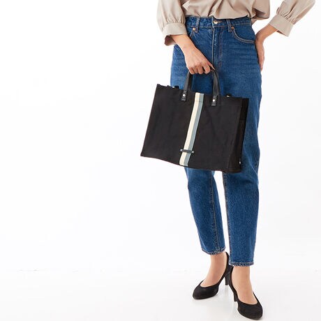 センターラインが印象的な、キッチリキャンバストートバッグ。容量もありお仕事シーンでも活躍します。