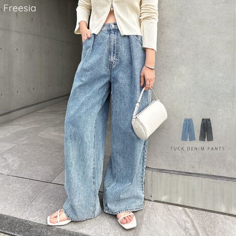 タック デニム ワイド パンツ Freesia フリージア