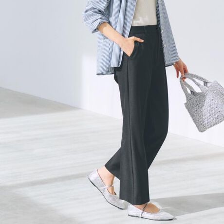シャツやブラウスをタックインして、オフィスカジュアルなスタイリングにぴったり。