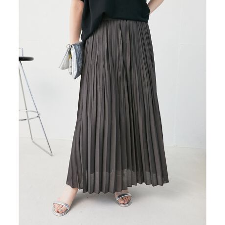 裾に向かってランダムなワッシャー加工で、ラフな雰囲気で着られるプリーツスカートです。