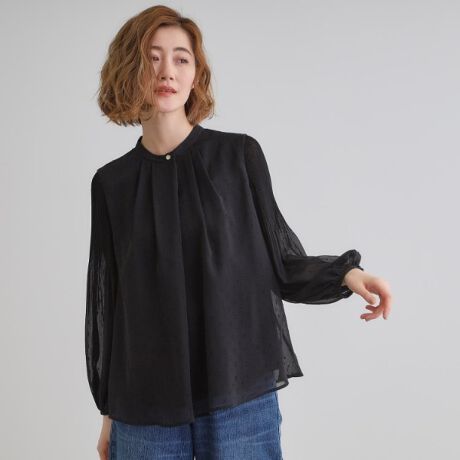 前後衿ぐり周りにはタックデザインを採用することで甘過ぎずすっきりした印象で着用頂けます。