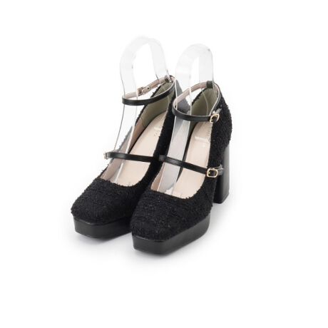 スクエアトゥダブルストラップ厚底パンプス 結婚式二次会 パーティー 25SS
