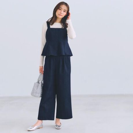セットアップで着用することでサロペット風の着こなしが楽しめるのがポイントです。